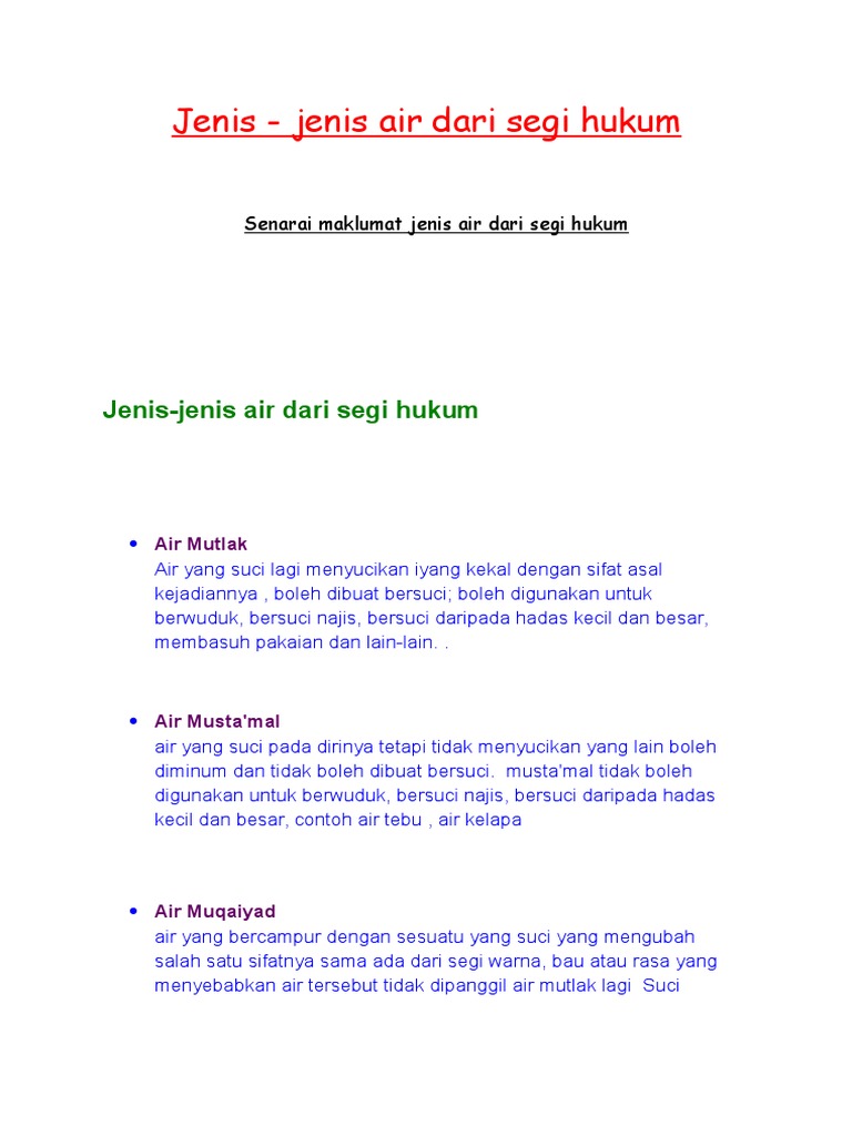 Jenis jenis air dalam islam - Sumber pengajaran