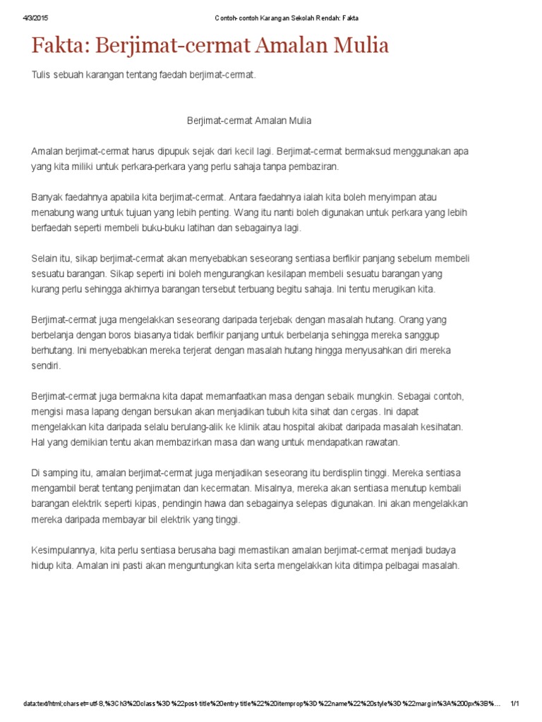 Contoh-Contoh Karangan Sekolah Rendah - Fakta - Berjimat Cermat
