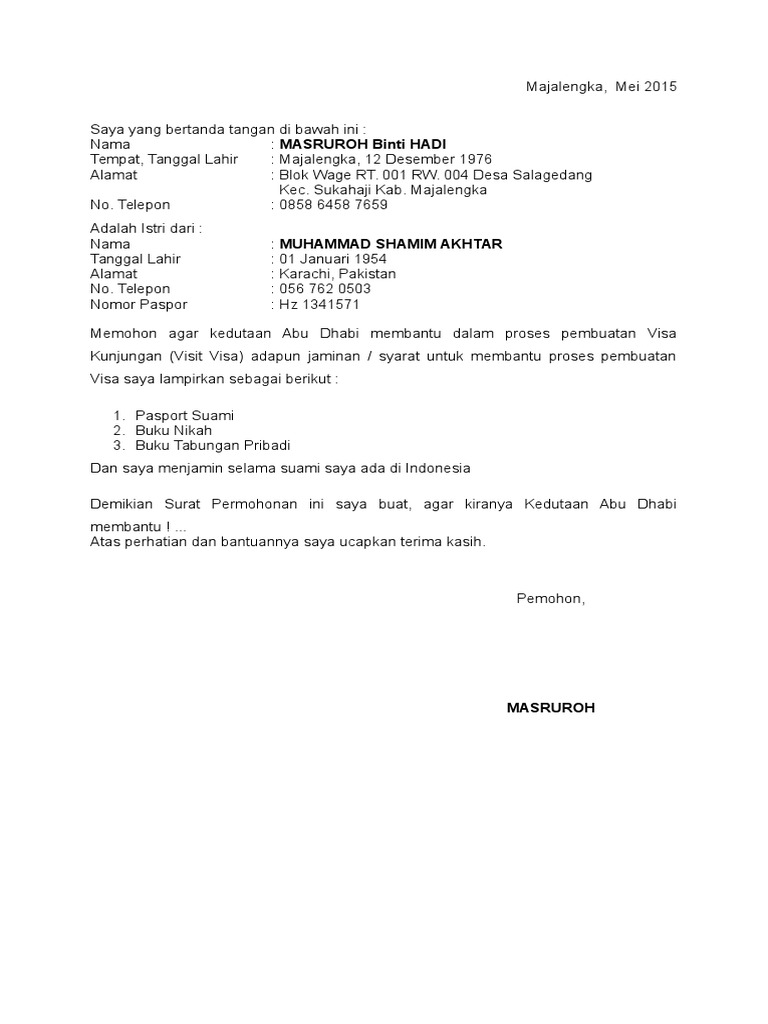 Surat Permohonan Pembuatan Visa PDF